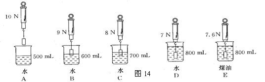 ③ 从图A和E的信息可以求出煤油的密度ρ煤油=