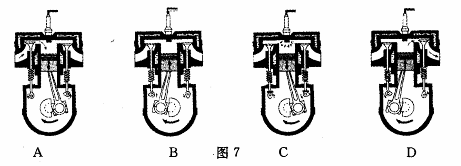 如图7所示是四冲程汽油机的一个工作循环示意图,其中属于做功冲程的是
