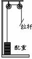 健身拉力器结构如图5-1所示.用250N的拉力向下拉动拉杆,使20kg的配重物在2s内匀速升高40cm.不计拉杆和绳的重力,g取 10N/kg.求: