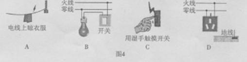 在如图4所示的四幅图中,符合安全用电要求的是( )