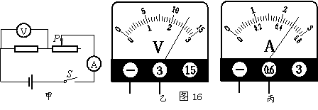 小英按图16甲所示的电路图连接实验电路,测量电阻R的阻值。闭合开关S,调节滑动变阻器的滑片P后,观察到电压表和电流表的示数分别如图乙、丙所示,则电压表的示数为 V,电阻R的阻值为 Ω。
