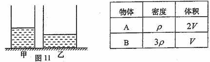 如图11所示,水平地面上的轻质圆柱形容器甲、乙分别盛有质量均为