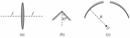 产生空心激光束的基本做法是利用光学系统将一束实心的圆柱形激光转换成为一束空心的激光。给定如下光学器件:焦距为