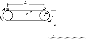 如图所示为一传送带的模型,传送带水平部分AB长度L在0.5m≤L≤2.0m的范围内取值,AB距水平地面的高度h =0.45m,皮带轮顺时针匀速转动使传送带总保持v=2.0m/s的速度匀速运动。现将一工件(可视为质点)从静止轻放在A端,一段时间后工件运动到B端并从B端水平抛出,已知工件与皮带之间的动摩擦因数μ = 0.20,g取10m/s2。