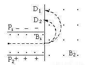 如图所示,a、b、c、d四种离子,它们带等量同种电荷,质量为ma=mb<mc=md,以不等的速率va<vb=vc<vd进入速度选择器后,有两种离子从选择器中射出,进入磁感应强度为B2的磁场.由此可以判断射向D1的是_________离子.(不计重力)