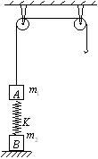 的物体B相连,弹簧的劲度系数为K,A、B都处于静止状态。一条不可伸长的轻绳绕过轻滑轮,一端连物体A,另一端连一轻挂钩。开始时各段绳都处于伸直状态,A上方的一段绳沿竖直方向。现在挂钩上挂一质量为