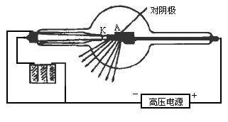 如图所示是伦琴射线管的示意图,K为阴极钨丝,通电后能产生质量为m、电量为e、初速为零的电子.A为对阴极(阳极),当AK接在电压为U的高压电源上时,电子被加速打在对阴极A上,使之发出伦琴射线,若普朗克常量为h,光速为c,电子动能全部转化为伦琴射线的能量.