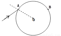 如图所示,在真空中波长为600 nm的激光束从A点射入圆柱形玻璃介质。若该激光束经折射后从B点射出,射出玻璃与射入玻璃的光线夹角为30°,AB孤所对的圆心角为120°,求该激光束在玻璃中的波长。