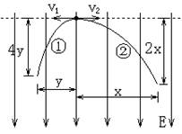 如图所示,一带电粒子在云室中运动时,可呈现其运动径迹。将云室放在匀强电场中,通过观察带电粒子的径迹,可以研究原子核发生衰变的规律。现将一静止的放射性C14放入上述装置中,当它发生衰变时,可以放出α粒子或电子或正电子。所放射的粒子与反冲核经过相同的时间所形成的径迹如图所示(衰变后瞬间放射出的粒子与反冲核的速度方向与电场方向垂直,x,y均表示长度),