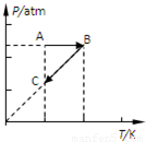 如图所示,一定质量的理想气体发生如图所示的状态变化,状态A与状态B 的体积关系为VA______VB(选填“大于”、“小于”或“等于”); 若从A状态到C状态的过程中气体对外做了100J的功,则此过程中______(选填“吸热”或“放热”)