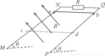 如图所示,MN、PQ为足够长的平行金属导轨,间距L=0.50m,导轨平面与水平面间夹角θ=370,N、Q间连接一个电阻R=5.0Ω,匀强磁场垂直于导轨平面向上,磁感应强度B=1.0T。将一根质量m=0.050kg的金属棒放在导轨的ab位置,金属棒及导轨的电阻不计。现由静止释放金属棒,金属棒沿导轨向下运动过程中始终与导轨垂直,且与导轨接触良好。已知金属棒与导轨间的动摩擦因数μ=0.50,当金属棒滑行至cd处时,其速度大小开始保持不变,位置cd与ab之间的距离s=2.0m。已知g=10m/s2,sin370=0.60,cos370=0.80。求: