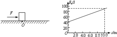 如图所示,在水平地面上有一只质量为5.0kg的木箱,用大小为10N的水平力推着箱子从位置O由静止开始沿直线向右运动,从某位置A开始,箱子的动能Ek随位移s的变化情况如右面的图象所示.重力加速度g取10m/s2