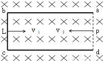 如图所示,在水平方向,与纸面垂直的足够大的匀强磁场中,有一足够长的U 形金属框架abcd以v1=2m/s的速度向右做切割磁感线运动,在框架abcd上下两板内产生一个匀强电场.有一个带电油滴以水平速度v2从P点(=)向左射入框架内做匀速圆周运动(g=10m/s2).求: