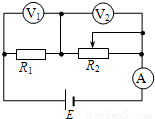 如图所示的电路中,A为理想电流表,V1和V2为理想电压表,R1为定值电阻,R2为可变电阻,电池E内阻不可忽略,则下列说法中正确的是( )