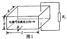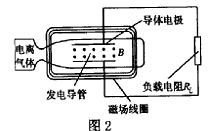 相连。整个发电导管处于图2中磁场线圈产生的匀强磁场里,磁感应强度为B,方向如图所示。发电导管内有电阻率为