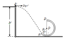 水平飞出,恰能沿切线从P点进入竖直圆弧管道并继续滑行。已知管道口径远小于圆弧半径,OP与竖直方向的夹角是37°,平台到地面的高度差为h=1.45m。若小球运动到圆弧轨道最低点时的速度大小是 10m/s。取g=10m/s2,sin53°=0.8,cos53°=0.6。求: ![]()