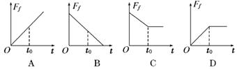 如图4甲所示,一物块放在粗糙斜面上,在平行斜面向上的外力F作用下斜面和物块始终处于静止状态,当F按图乙所示规律变化时,物块与斜面间的摩擦力大小变化规律可能 是图5中的 ( )