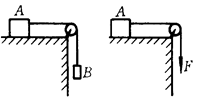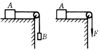 如图所示,水平桌面上的物体A,质量为m1,与桌面的滑动摩擦系数为μ,用细绳跨过定滑轮与质量为m2的物体B连接,设B的加速度为a.把B移去,用一竖直向下的拉力F=m2g代替B,设这时A的加速度为a′,则: ![]()