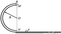 如图所示,一轨道固定在竖直平面内,水平ab段粗糙,bcde段光滑,cde段是以O为圆心、半径R=0.4m的一小段圆弧,圆心O在ab的延长线上。物块A和B可视为质点,紧靠在一起,静止于b处。两物体在足够大的内力作用下突然分离,分别向左、右始终沿轨道运动。B运动到d点时速度恰好沿水平方向,A向左运动的最大距离为L=0.5m,A与ab段的动摩擦因数为μ=0.1,mA=3kg,mB=1kg,重力加速度g=10m/s2,求: