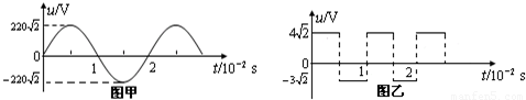 图甲和图乙分别表示两种电压的波形,其中图甲所示电压按正弦规律变化,下列说法中正确的是 ( )