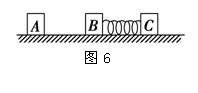 如图6所示,A、B、C三个木块的质量均为m,置于光滑的水平桌面上。B、C之间有一轻质弹簧,弹簧的两端与木块B、C牢固连接,弹簧处于原长。现A以初速v0沿B、C的连线方向朝B运动,与B相碰并粘合在一起。