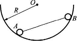 两个所受重力大小分别为GA和GB的小球A和B,用细杆连接起来,放置在光滑的半球形碗内.小球A、B与碗的球心O在同一竖直平面内,如图所示.若碗的半径为R,细杆的长度为