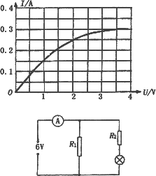 (2)由正确实验操作得到的数据描绘出小灯泡的伏安特性曲线如图所示,将本实验用的小灯泡接入下图所示的电路,电源电压恒为6 V,定值电阻R1=30 Ω.电流表读数为0.45 A,此时小灯泡消耗的实际功率为________W.(不计电流表的内阻)