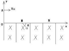 (09·天津·11) (18分)如图所示,直角坐标系xOy位于竖直平面内,在水平的x轴下方存在匀强磁场和匀强电场,磁场的磁感应为B,方向垂直xOy平面向里,电场线平行于y轴。一质量为m、电荷量为q的带正电的小球,从y轴上的A点水平向右抛出,经x轴上的M点进入电场和磁场,恰能做匀速圆周运动,从x轴上的N点第一次离开电场和磁场,MN之间的距离为L,小球过M点时的速度方向与x轴的方向夹角为