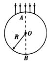 束平行光沿AB方向。射向圆柱体若一条入射光线经折射后恰经过B点,则这条入射光线到AB的距离是多少?