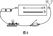 小明用如图4所示的器材探究“影响电阻大小的因素”。a、b为长度一样的镍铬合金丝,b比a的横截面积大。关于此实验,下列说法正确的是: