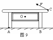 如图9所示,课桌的重心在O点,若在课桌的C点用力F把桌腿B抬离地面,在抬起时另一桌腿A没有滑动。