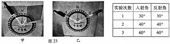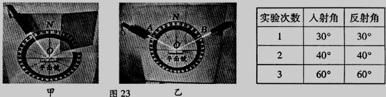 (3)在图23乙中,再用另一只激光笔让光线沿着BO(即逆着原反射光线)射向平面镜时,可看到反射光线沿OA射出,这说明______________________________。