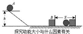 | 序号 | 钢球质量m/g | 木块滑行距离s/cm | 序号 | 钢球撞击速度v/cm/s | 木块滑行距离s/cm |