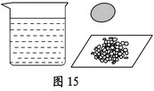 (3)给你一杯清水、一个熟鸡蛋和适量的食盐(如图15),请你设计实验验证浮力与液体的密度是否有关。简要写出你的实验验证的方法