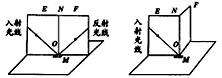 如图所示是小明同学探究反射定律的实验装置。平面镜M平放在平板上,白色硬纸板竖立在镜面上,硬纸板是由E、F两块粘接起来的,其中F可绕接缝ON转动。![]()