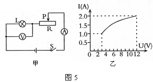 如图5甲,电源电压保持不变,小灯泡的额定电压为12V。闭合开关S后,当