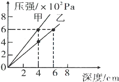 水的密度(填:“大于”、“等于”或“小于”);从图象可以推断出,8cm深的甲液体产和的压强为