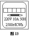 Èçͼ13ΪÓû§µÄµçÄÜ±í£¬ÃúÅÆÉÏ¡°10A¡±±íʾ £»¡°2500 r/KWh¡±£¬±íʾ £¬ÈôÔÚ¸ÃÓû§µÄ¼ÒÍ¥µç·ÖÐÖ»¸øÒ»Ì¨Î¢²¨Â¯
