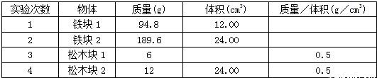 | 物质 | 实验次数 | 质量m/g | 体积V/cm3 | |