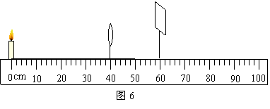 在探究“凸透镜成像规律”的实验中,所用凸透镜的焦距是10cm,用米尺在水平桌面上画一直线并标明刻度,将点燃的蜡烛、透镜、光屏放在这条直线上如图6所示。将蜡烛和透镜固定在图6所示的位置,左右移动光屏始终看不到烛焰在光屏上成像,原因可能是 。重新调整后,保持蜡烛和透镜在原来图6的位置,移动光屏到适当的位置,可以在光屏上得到烛焰 (填“正立”或“倒立”)、 (填“放大”或“缩小”)的实像。要使烛焰在光屏上所成的像变大,应 (填“增大”或“减小”)蜡烛到透镜的距离,再增大光屏到透镜的距离。