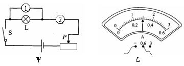 (1)若图甲中的①和②表示电表,则①是 表,②是 表。