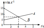 C.t=4s时,A、B两物体的速度相同