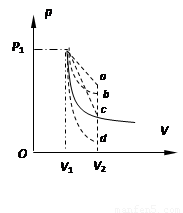 一定质量的理想气体从状态(p1、V1)开始做等温膨胀,状态变化如图中实线所示.若该部分气体从状态(p1、V1)开始做绝热膨胀至体积V2,则对应的状态变化图线可能是图中虚线(选填图中虚线代号).( )
