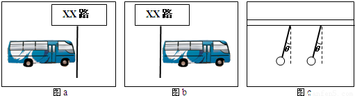 质量为m=6×103kg、长度为10m的公共汽车,由图a所示的位置匀加速启动,经过一段时间到达图b的位置.图c是车内横杆上悬挂的拉手环经放大后的图象,其中角θ=30.已知当地的重力加速度为g=9.8m/s2,根据题目中提供的信息.下列不可以估算出的物理量有 ( )