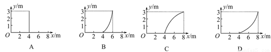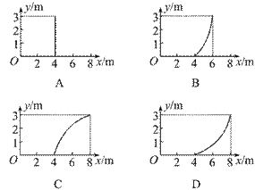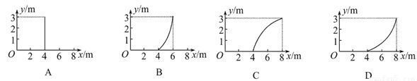 质量m=4 kg的质点静止在光滑水平面上的直角坐标系的原点O,先用沿+x轴方向的力F1=8 N作用了2 s,然后撤去F1;再用沿+y轴方向的力F2=24 N作用了1 s,则质点在这3 s内的轨迹为(   )