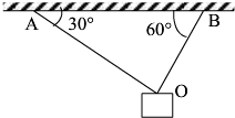 如图所示,OA,OB两绳所能承受的最大拉力分别为20N和36N,上端固定在天花板上,若在它们下端O挂一物体,两绳与天花板夹角分别为30°和60°,为了使绳子不被拉断,则物体的重量不得超过多少?