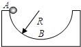 (8分)如图所示,固定的半圆形槽内壁内径为R,质量为m的小球(可看作质点)从内边缘A处静止释放。小球从A处滑到底部最低点B的过程中,克服摩擦阻力所做的功为mgR/2 ,求小球滑到底部最低点B时速度的大小及此时小球对内壁的压力大小。