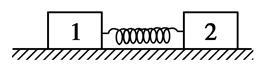 如右图所示,在一粗糙水平面上有两个质量分别为m1和m2的木块1和2,中间用一原长为L、劲度系数为k的轻弹簧连接起来,木块与地面间的滑动摩擦因数为μ.现用一水平力向右拉木块2,当两木块一起匀速运动时两木块之间的距离是( )![]()