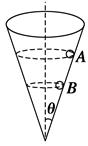 一个内壁光滑的圆锥筒的轴线是竖直的,圆锥固定,有质量相同的两个小球A和B贴着筒的内壁在水平面内做匀速圆周运动,如图所示,A的运动半径较大,则 ( )![]()