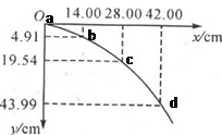 ②某同学做“研究平抛物体运动”实验时在白纸上画出小球的运动轨迹如图所示,根据图中的数据,计算小球做平抛运动的初速度v0 = __ m/s。